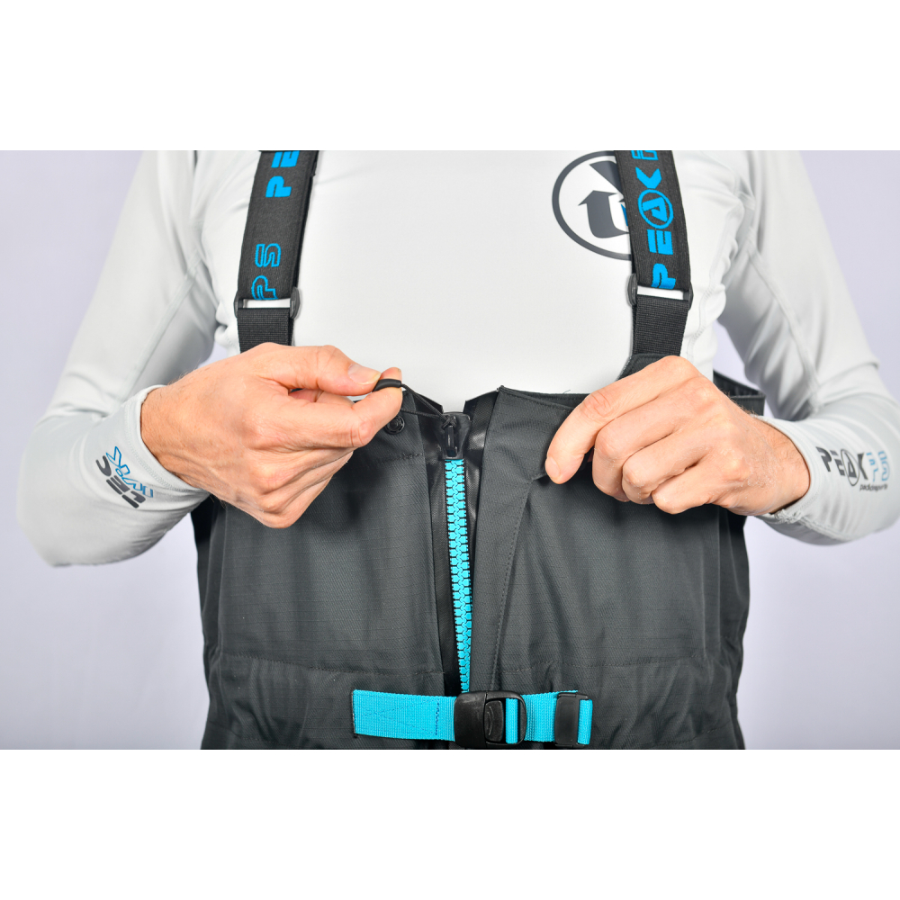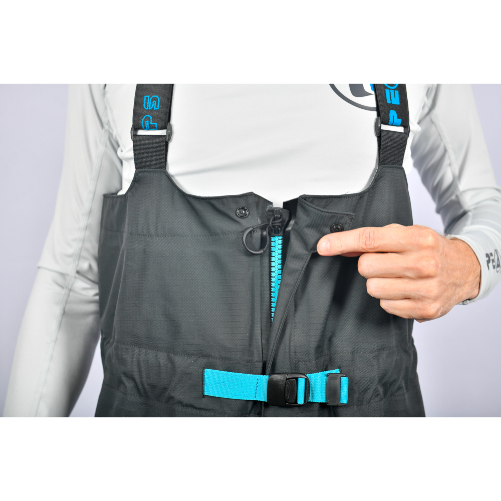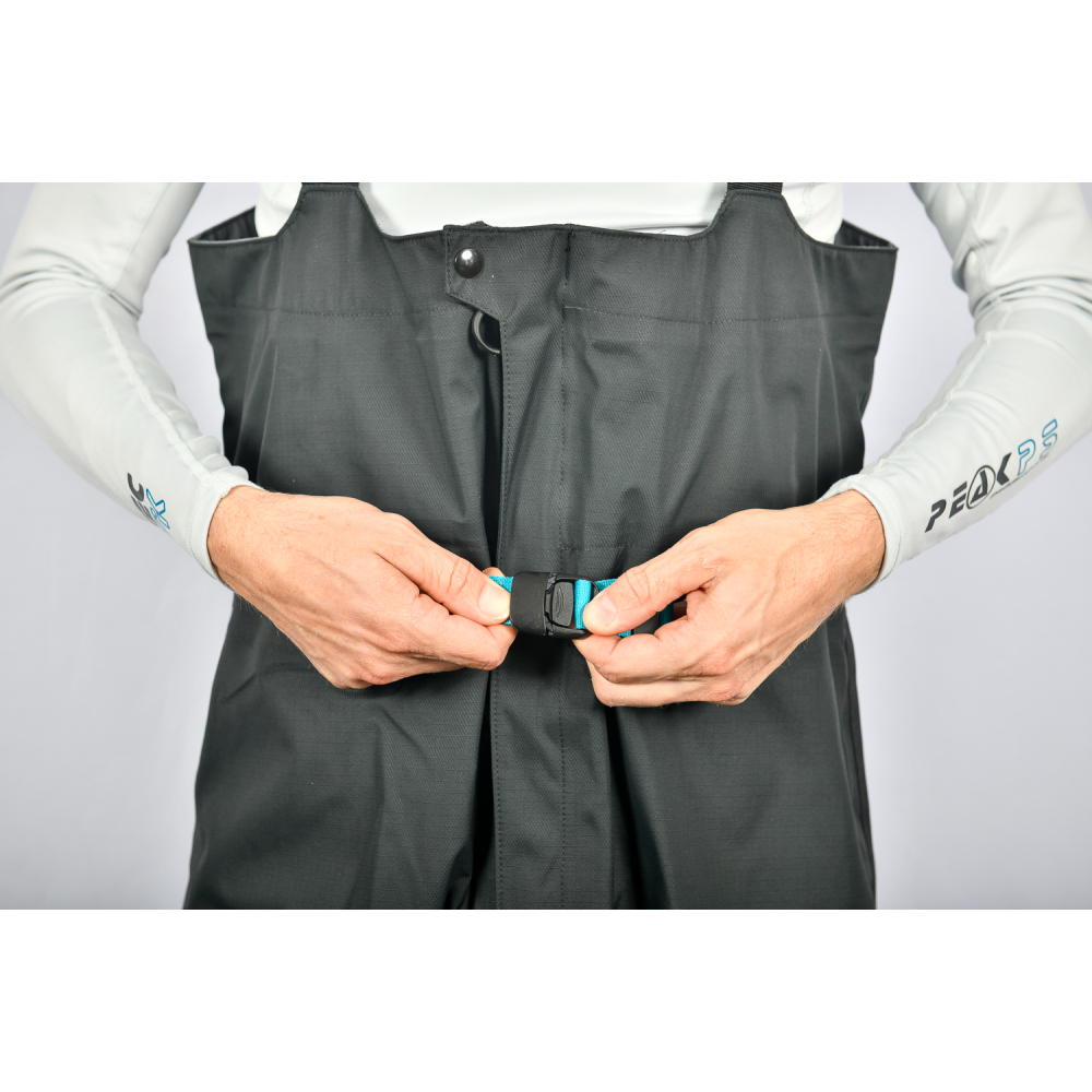 - Chest high fabric waist with wide Peak PS logo elastic shoulder straps