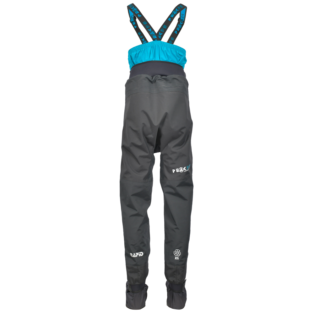 Rapid Pants feature a midweight X4 recycled nylon and a waterproof YKK 10mm Aquaseal front fly. Twin adjustable shoulder straps and a double waist give superb fit and protection. Articulated cut with bent knees delivers great comfort, ideal for any paddlesport activity, whether it be open boating, WW kayaking or adventuring out at sea.