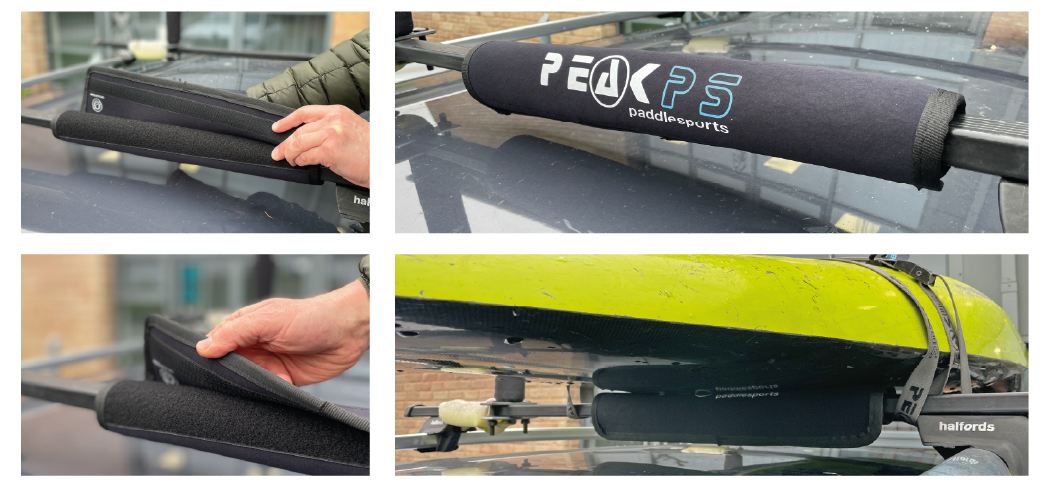 The Roofrack Wraps are the perfect item for looking after your prized kayak or canoe. Available in two widths 45cm and 70cm, both with a large adjustable size range that’ll fit most roof bar styles, whether they be smaller square bars (also commonly found on trailers) to much the larger wing & chunky / slide bars. Attached with Velcro, supple yet hard wearing 5mm recycled neoprene covers, finished with recycled polyester face fabric and fresh Peak PS logos.